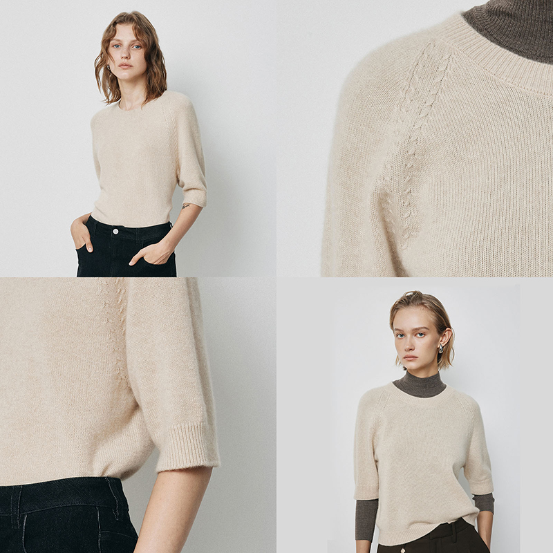 高级感上衣宽松打底针织衫 圆领100%纯山羊绒衫 女高端毛衣秋冬新款