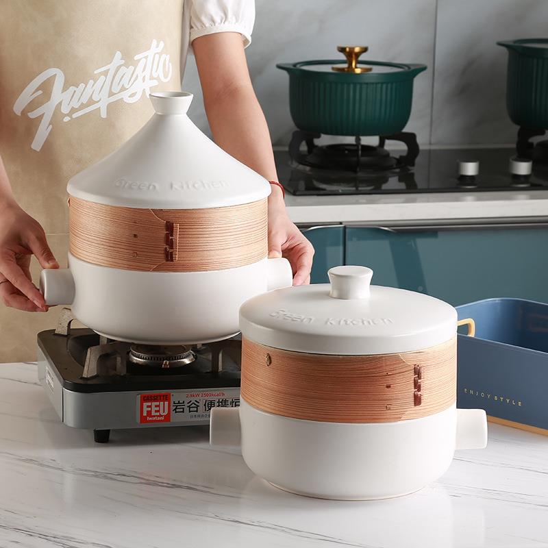 下牙口木制蒸笼家用加深珐琅汤锅石锅专用竹制蒸格手工反牙蒸屉