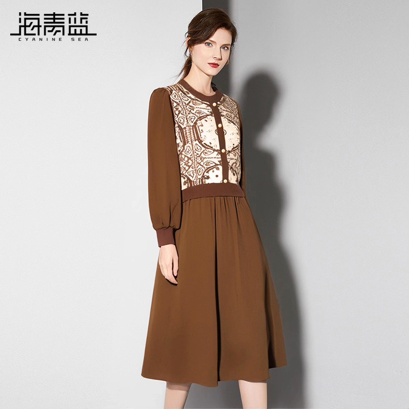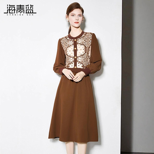 紫色印花长袖 法式 连衣裙女流行气质裙子长裙 新款 DPLAY2025年秋季