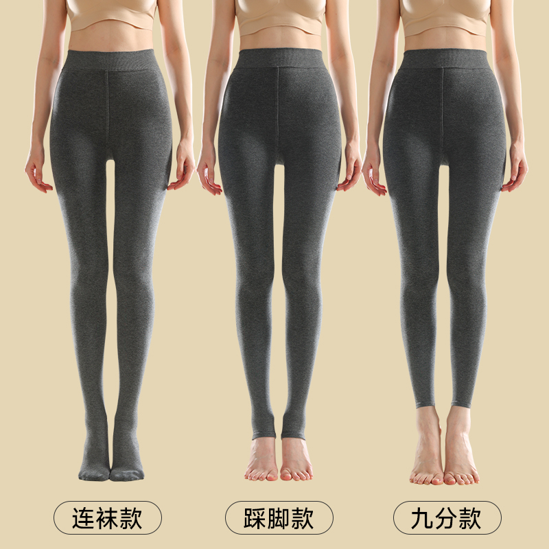 袜 不掉档加肥加大外穿秋冬加绒加厚棉连裤 灰色春秋打底裤 胖mm大码