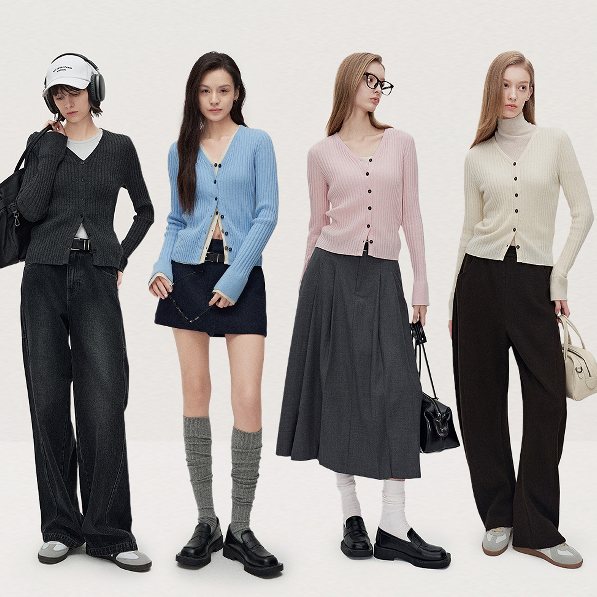 V领毛衣针织外套开衫 OCHIRLY欧时力 秋冬新品 可机洗100%羊绒