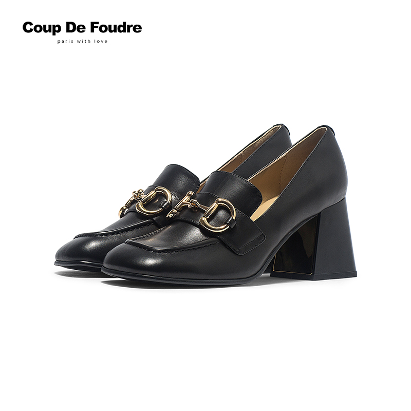 单鞋 羊皮浅口法式 千百度粗高跟鞋 异形跟职业通勤大码 静音系列