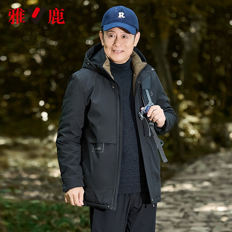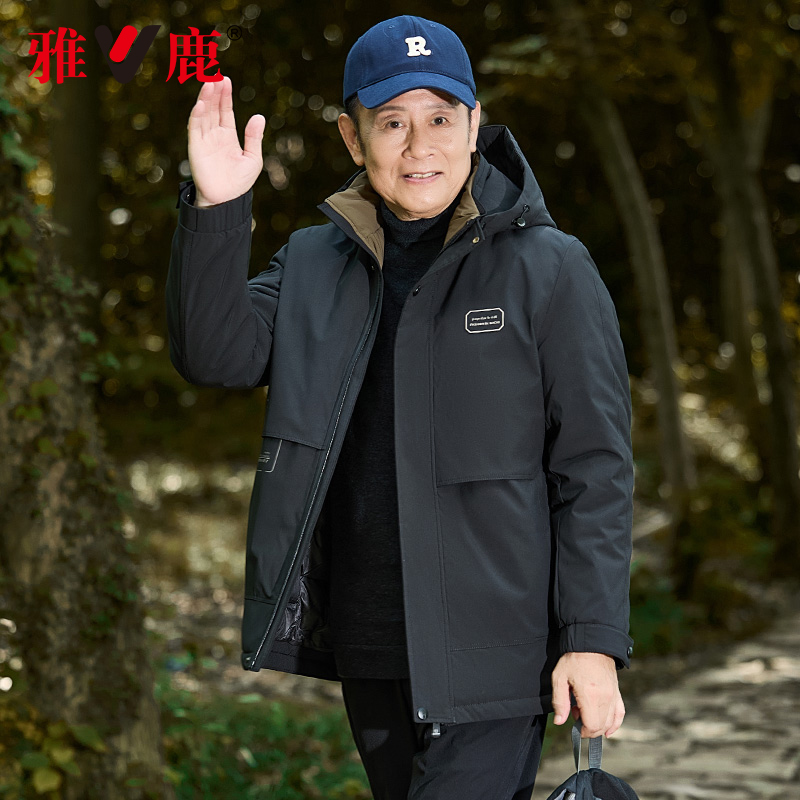棉袄服外套 桑蚕丝防风冬季 雅鹿中老年爸爸冬装 棉衣男加厚2025新款
