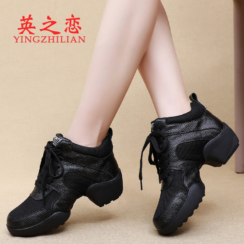 现代跳舞鞋 英之恋2025新款 女士软底真皮运动鞋 广场舞蹈鞋 爵士舞鞋