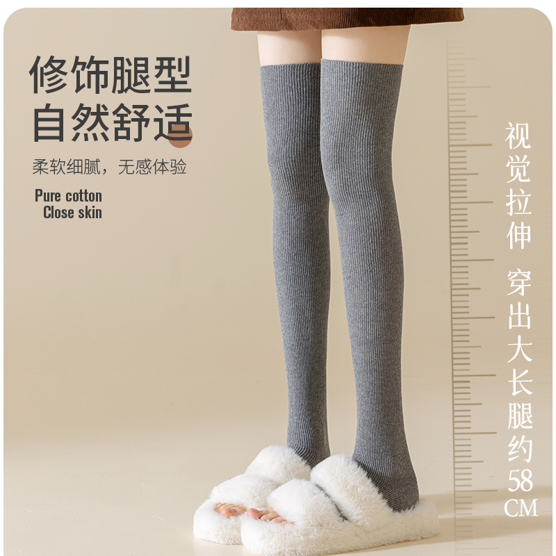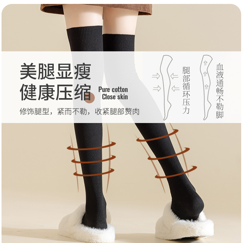 过膝袜子女秋冬款 纯棉纱线长筒袜加长保暖高筒防滑护膝大腿袜春秋