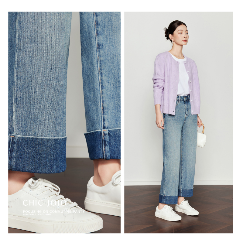 复古休闲通勤气质百搭牛仔阔腿裤 新款 爱依服小个子2025夏季 IEF