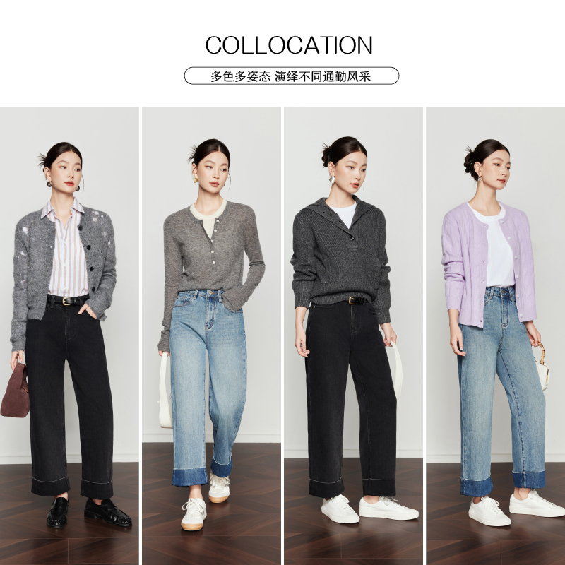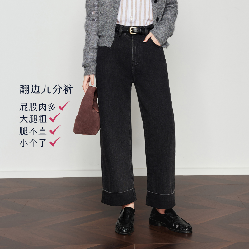 子女 宽松显瘦阔腿直筒牛仔裤 太平鸟复古高腰直筒牛仔裤 2025年秋季