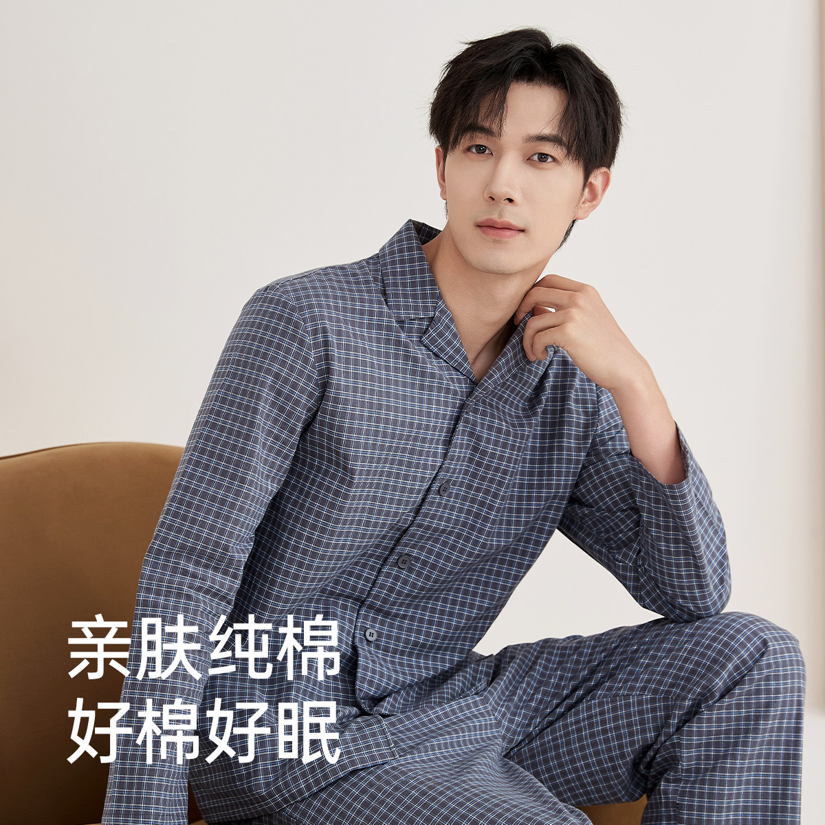 睡衣男款 全棉家居服套装 纯棉长袖 时尚 春秋2025年新款 都市丽人男士