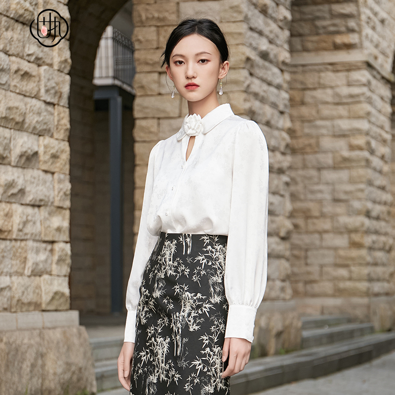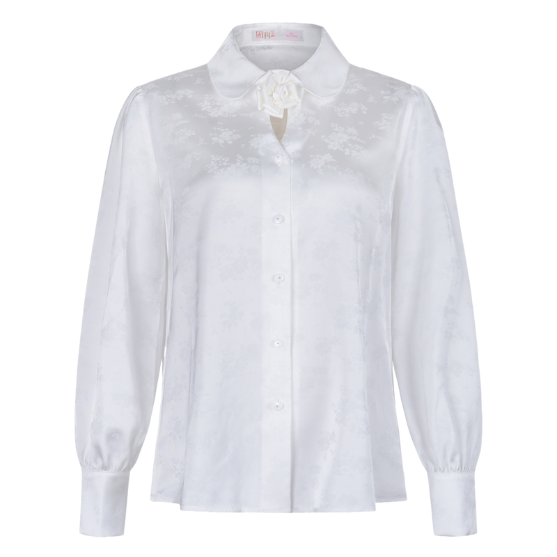 新款 德玛纳秋季 全棉法式 泡泡袖 女衬衣上衣 白衬衫 蜜蜂欢乐社