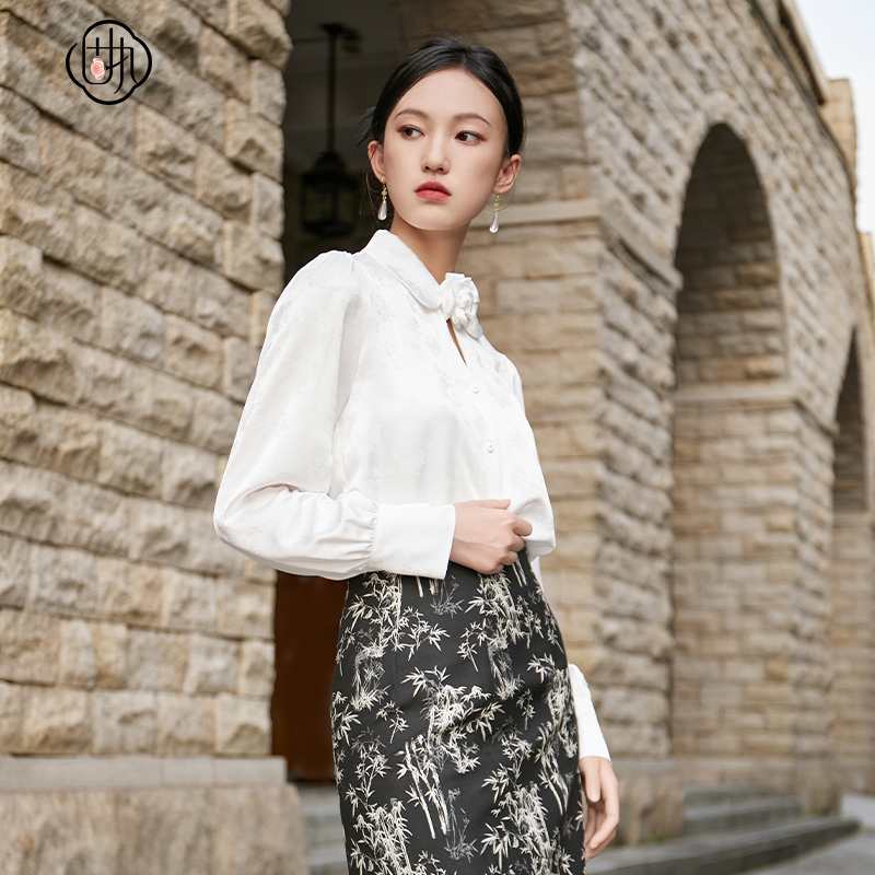 公考教资面试套装 女士职业正装 通勤衬衣 衬衫 图曼朵白色蝴蝶结长袖