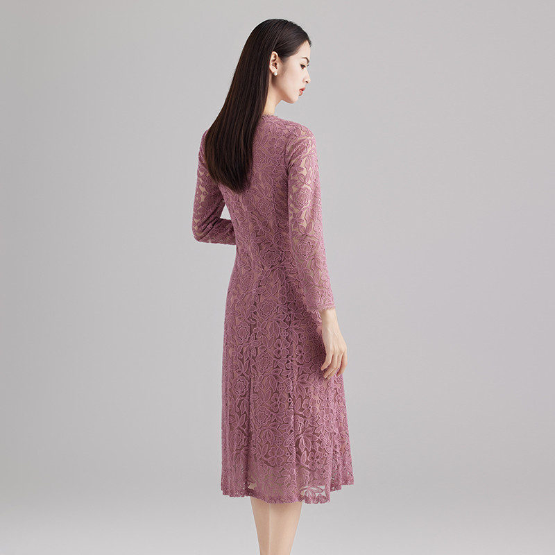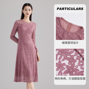 气质优雅蕾丝拼接裙子 新款 秋水伊人中式 复古重工连衣裙2025年冬季