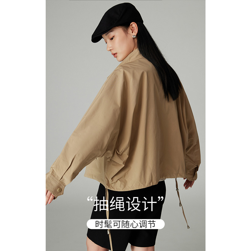 秋冬新款 开衫 修身 收腰上衣早秋穿搭美式 短款 灰色连帽卫衣外套女款
