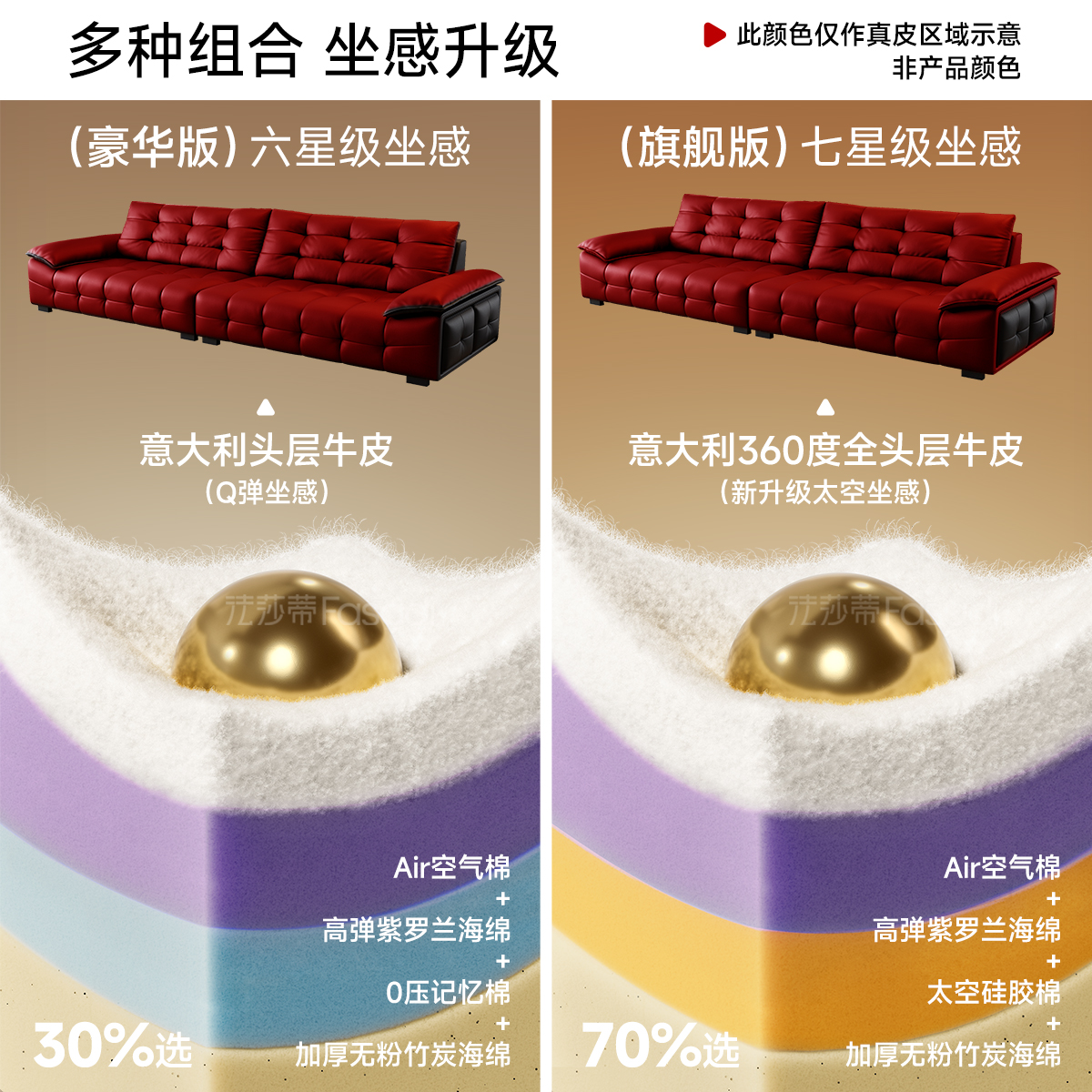 法莎蒂意式 极简皮艺直排棉花糖沙发 极简拉扣真皮沙发小户型意式