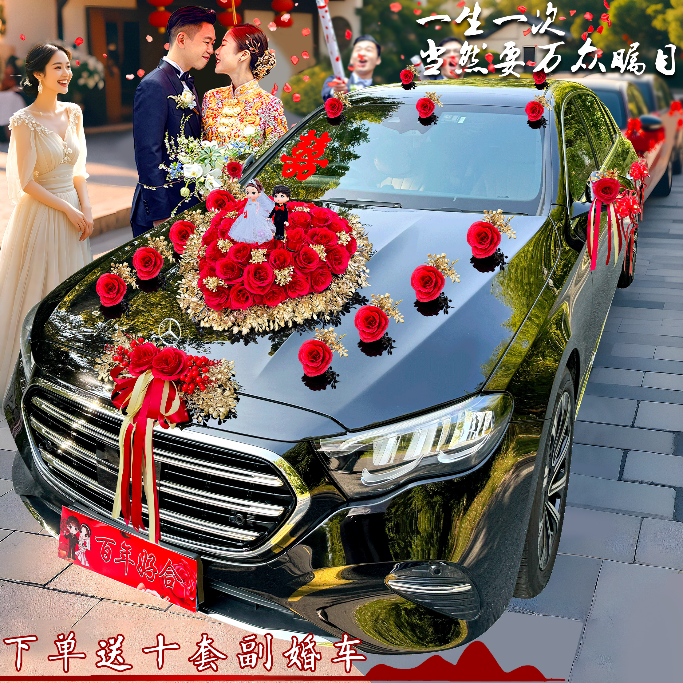 婚车装 饰车头花车队拉花全套吸盘高级感布置2025结婚仿真头车花副