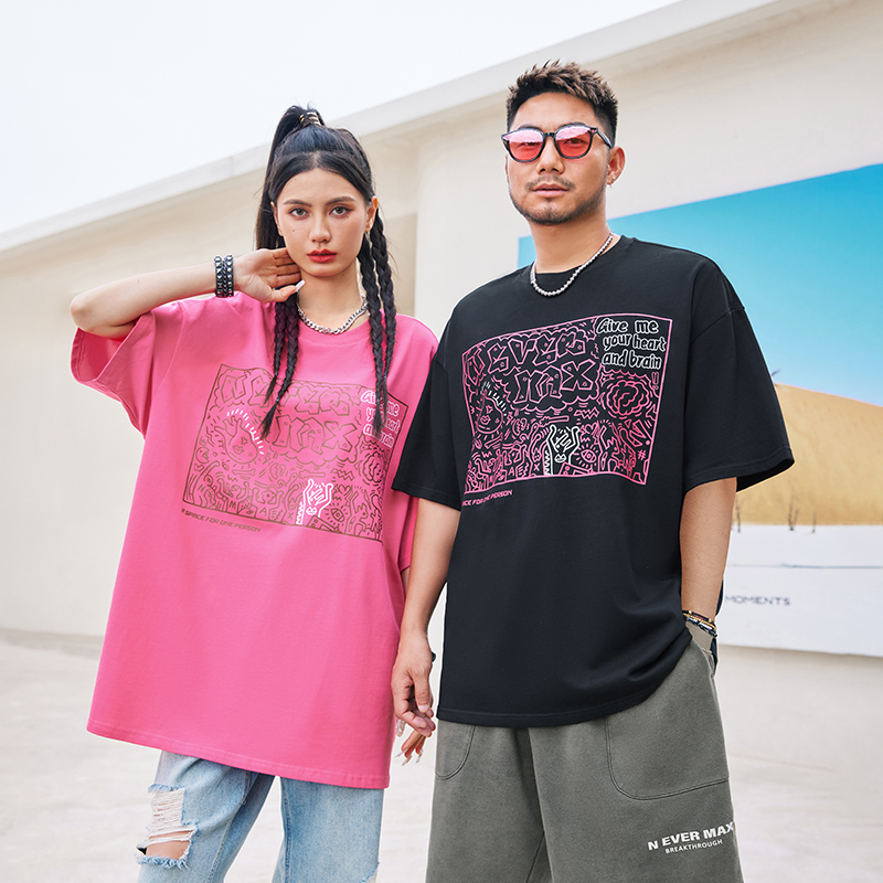 NMAX大码 体恤加肥加大撞色涂鸦重磅上衣 高街字母印花圆领T恤短袖