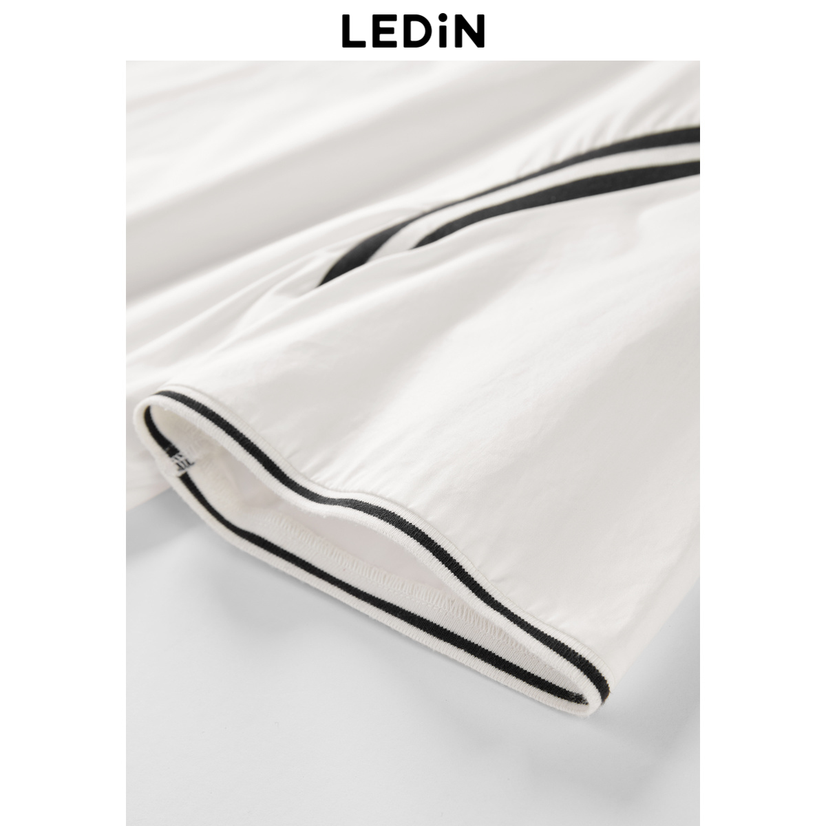 黑色连衣裙女18465922 假两件拼接宽松圆领短袖 设计师款 佐丹奴新款