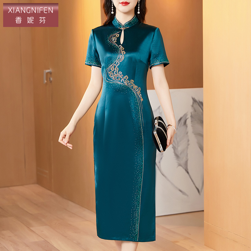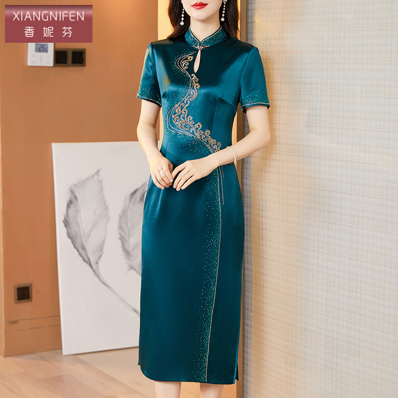 香妮芬高端醋酸妈妈婚宴礼服2025新款 喜婆婆高贵气质宴会旗袍 夏季