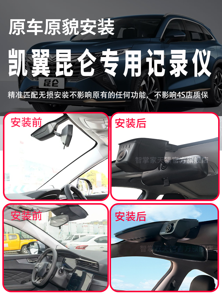 凯翼昆仑行车记录仪专用原厂4K高清24h停车监控远程gps免走线安装