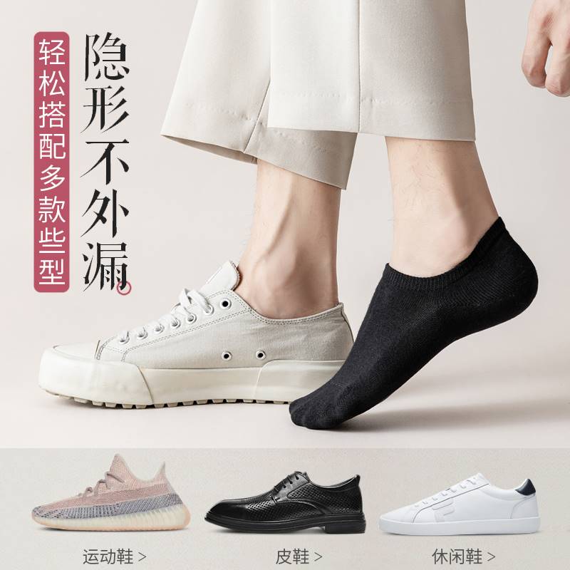 防臭夏天浅口船袜隐形运动ins潮 薄款 黑白袜子男士 短袜非纯棉夏季