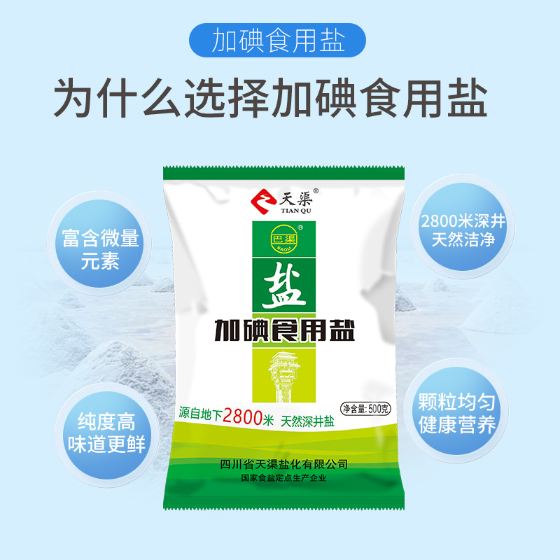 天渠深井加碘食用盐500g 5袋家用盐焗腌制泡菜炒菜调味品料批发