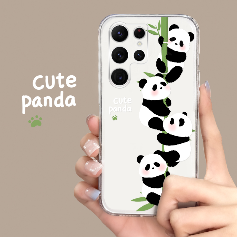 适用于三星s23ultra手机壳可爱熊猫s22ultra透明软硅胶Galaxy超薄防摔s22卡通s21夏天s20新款 直边s10全包镜头