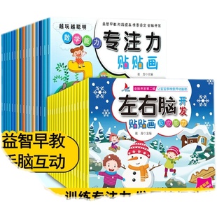 全套32册左右脑全脑潜能开发专注力训练贴贴画贴纸书两三岁幼儿园宝宝儿童专注力注意力逻辑思维训练2 6岁益智亲子早教游戏书籍