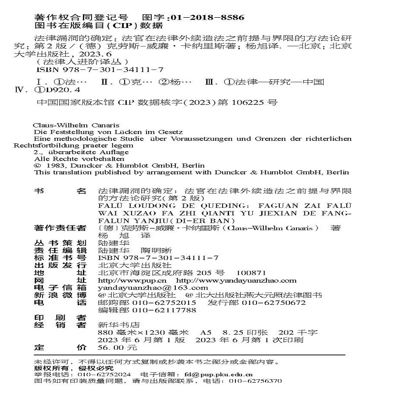 卡纳里斯 确定 克劳斯 法律漏洞 杨旭 北京大学出版 方法论研究 中文版 法官在法律外续造法之前提与界限 社 第2版 译 威廉