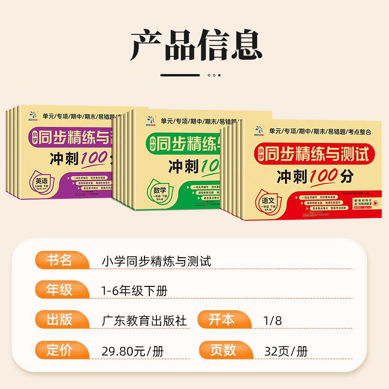小学下册同步测试卷视频课期终中末冲刺100分上下册一二年级三四五六年级上下册任选试卷语文数学英语人教版 练习册专项训练题