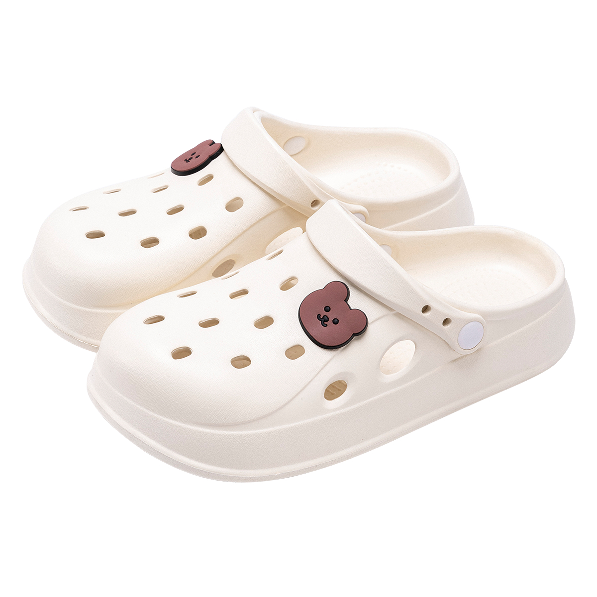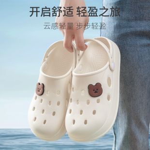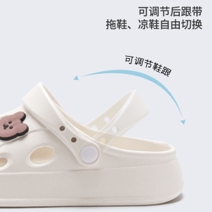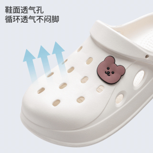 防滑外穿 可爱小熊沙滩厚底两穿包头情侣凉拖鞋 踩屎感洞洞鞋 女夏季