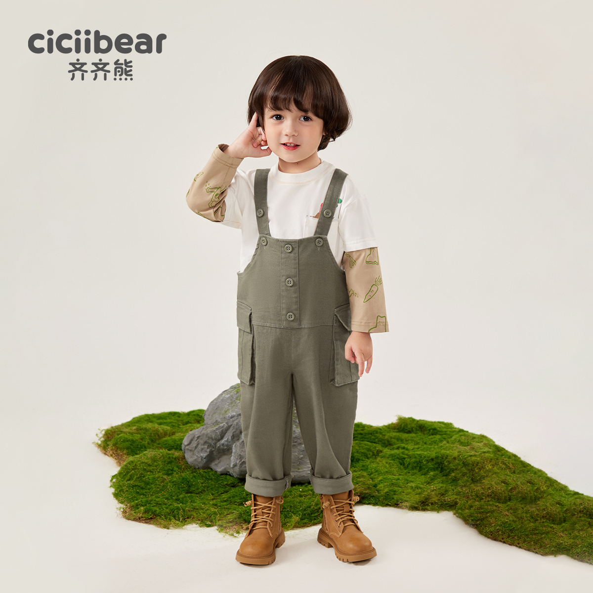 儿童裤 春秋小童新款 子宝宝长裤 外穿韩版 齐齐熊男童工装 秋装 背带裤