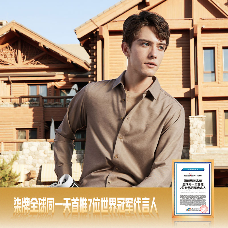 休闲美式 三福2025冬季 双口袋织唛工装 男长袖 翻领衬衣510187 衬衫
