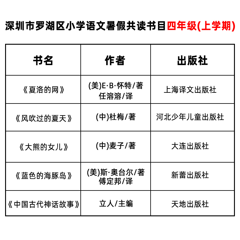 大熊 中国古代神话故事文学 夏洛 海豚岛 蓝色 女儿 夏天 风吹过 网 阅读书目全5册 深圳市罗湖区小学四年级上学期暑假推荐