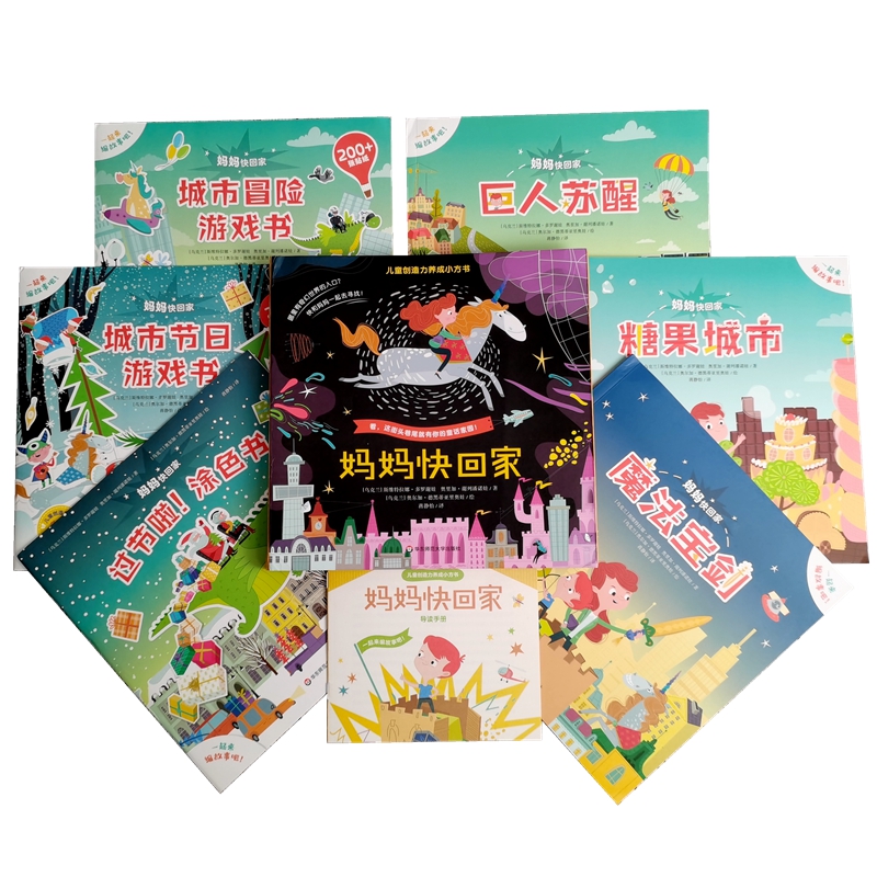 共6册 套装 3册故事书 2册贴纸游戏书 妈妈快回家 1册涂色书 儿童创造力养成小方书