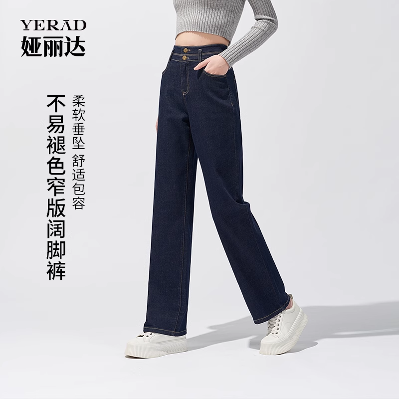 子小个子阔腿女裤 娅丽达丹宁直筒牛仔裤 防褪色裤 新款 女2025年秋季