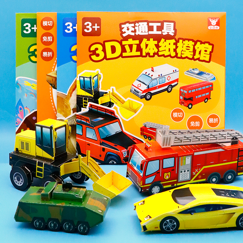 正版 3D立体纸模馆立体书儿童3d立体书飞机恐龙汽车纸模型折纸手工儿童立体书diy自制半成品剪纸幼儿园3到6岁益智玩具书男孩女孩