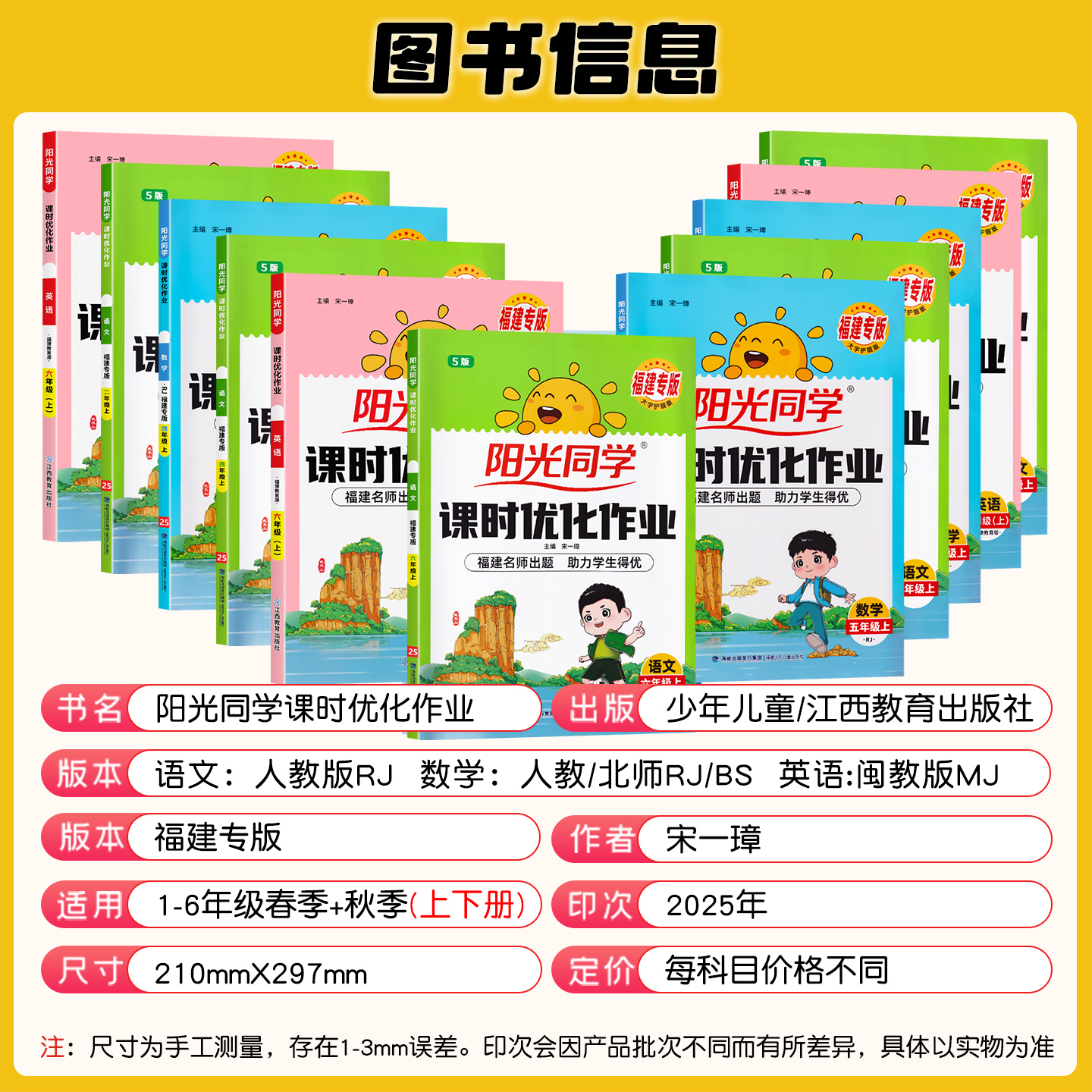 北师大闽教版 阳光同学课时优化作业一二三年级四五六年级上册下册语文数学英语人教版 苏教小学生课本同步训练习册 2025秋版 福建专版