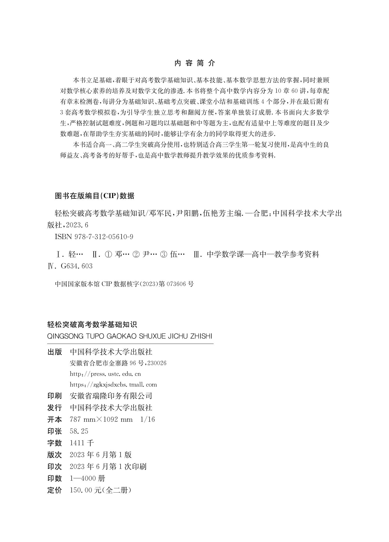 配套参考答案 邓军民 尹阳鹏 新书现货 中科大出版 轻松突破高考数学基础知识 伍艳芳主编 社旗舰店 套装