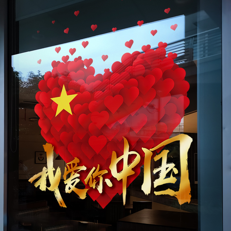 国庆节装 饰布置窗贴商场爱心图案窗花店铺橱窗静电玻璃贴门贴纸
