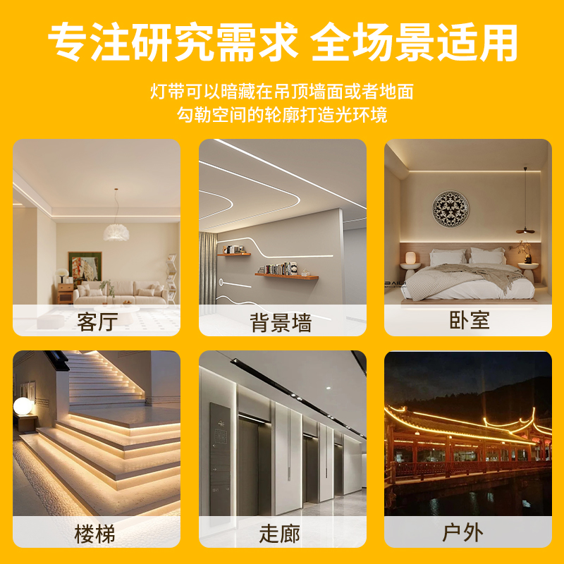 COB灯带led灯条客厅吊顶220v自粘高压超亮线形灯槽户外防水软灯条