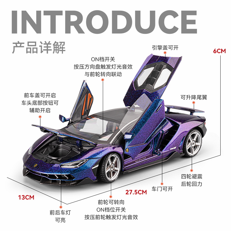 车致1 18兰博基尼LP770超大号合金车模型男孩玩具金属收藏摆件