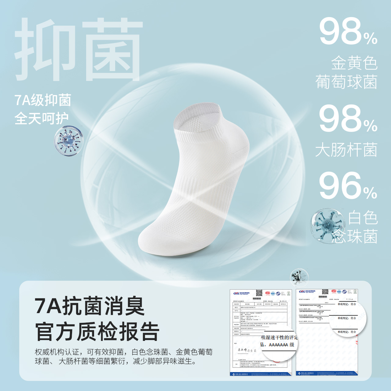 白色袜子女士夏季 薄船袜透气吸汗网眼纯色运动7a抗菌短袜白袜棉袜