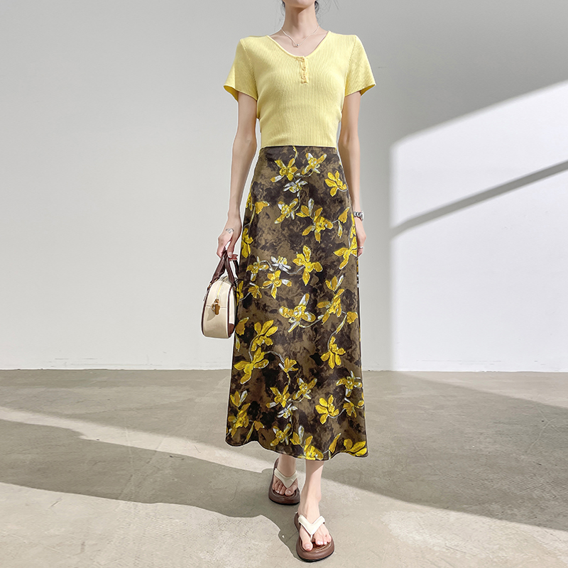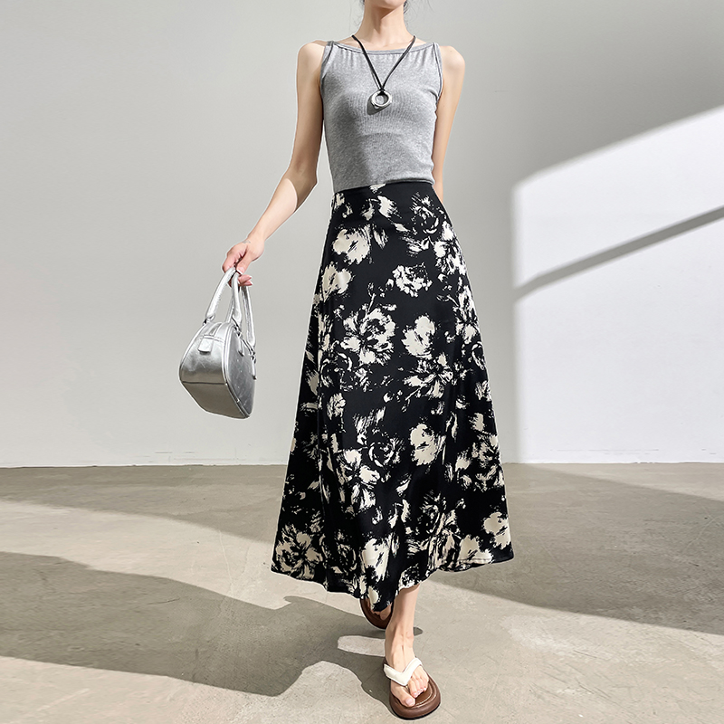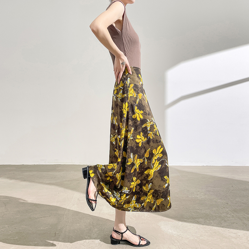 高腰显瘦a字高级感中长款 薄款 包臀裙子 醋酸印花半身裙女夏季 法式