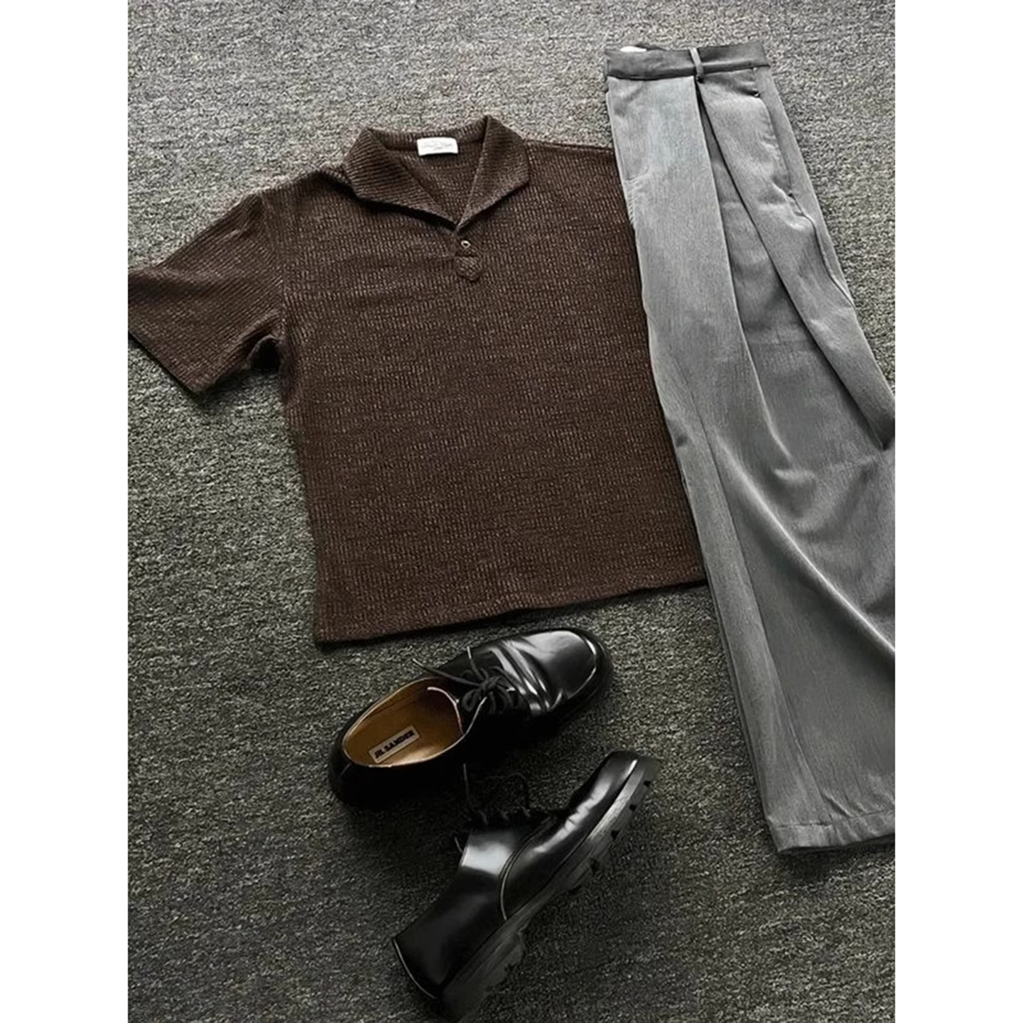 正肩短袖 老钱风华夫格意式 修身 男夏季 人夫感穿搭t恤 亨利领polo衫