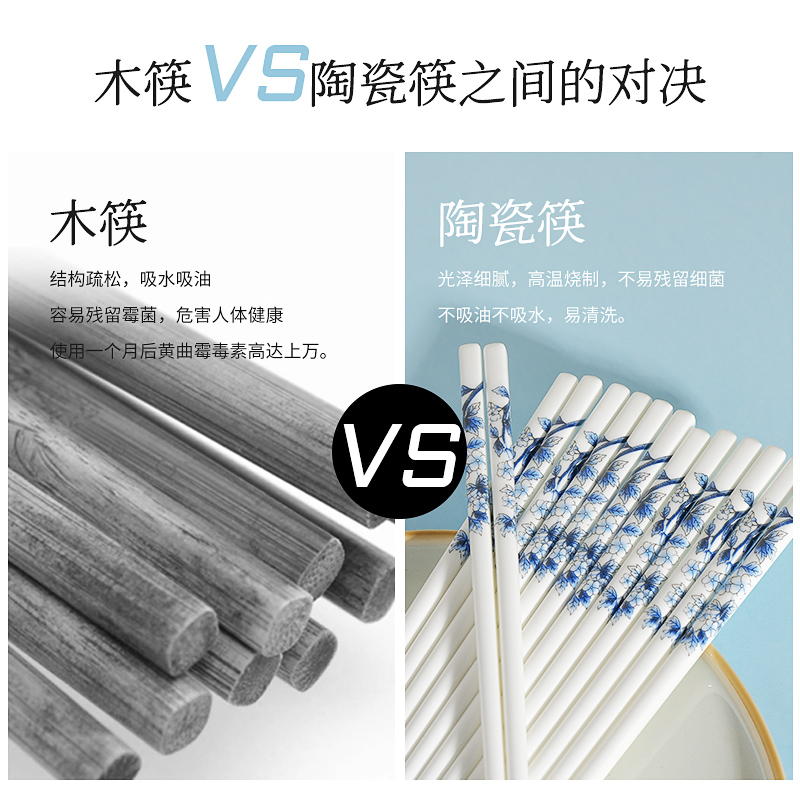 景德镇陶瓷筷子家用高档防霉抗菌易清洗耐高温防滑耐摔环保健康筷