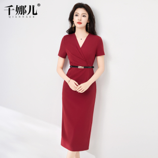 裙子1642 收腰假两件套装 红色连衣裙女2025新款 初春秋气质显瘦长袖