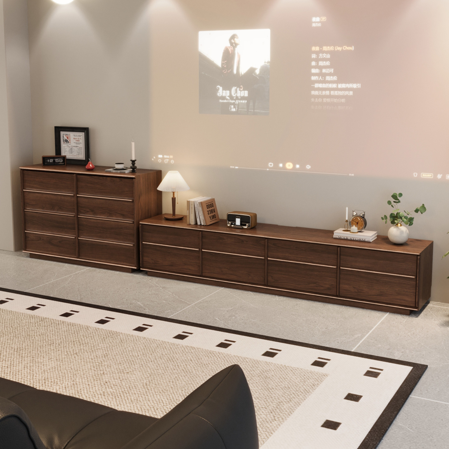 顾家家居定制背景墙电视柜一体客厅满墙电视柜储物柜卡塔尼亚