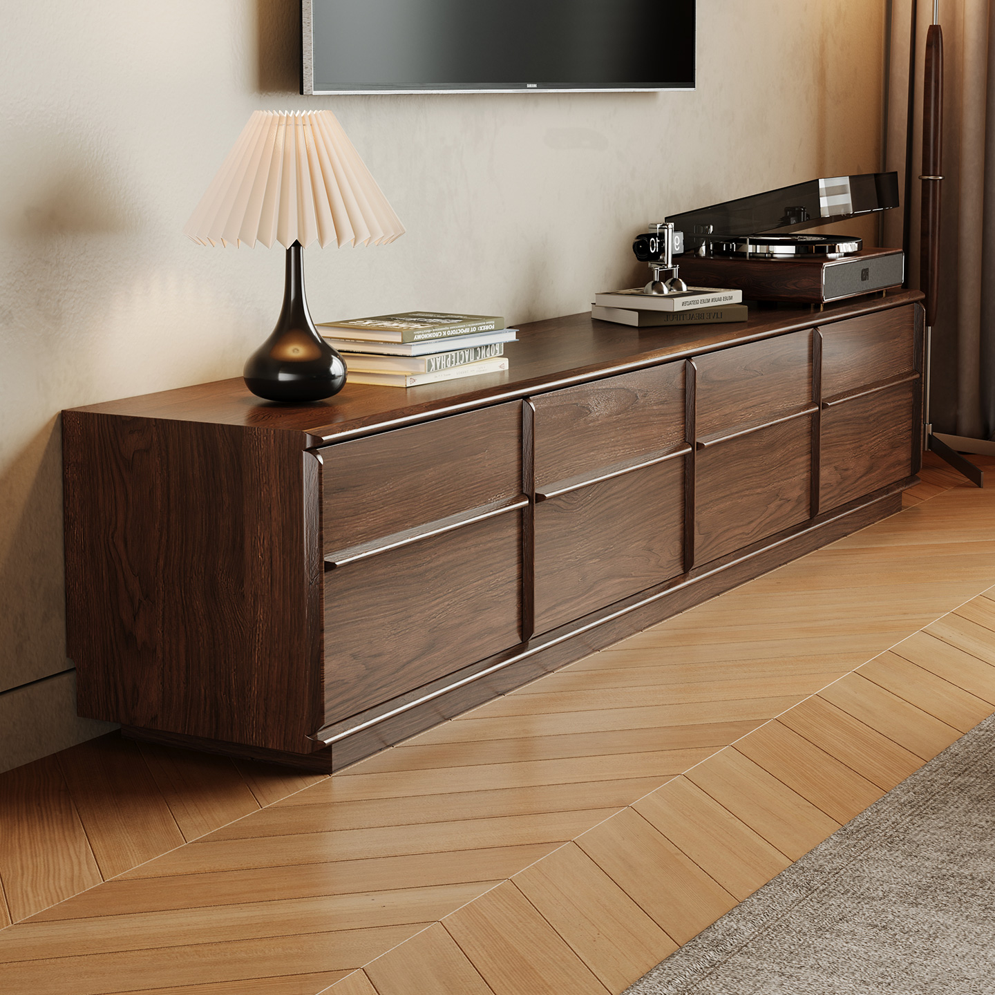 繁丰实木电视柜客厅2025新款 家用小户型落地电视柜收纳储物柜一体