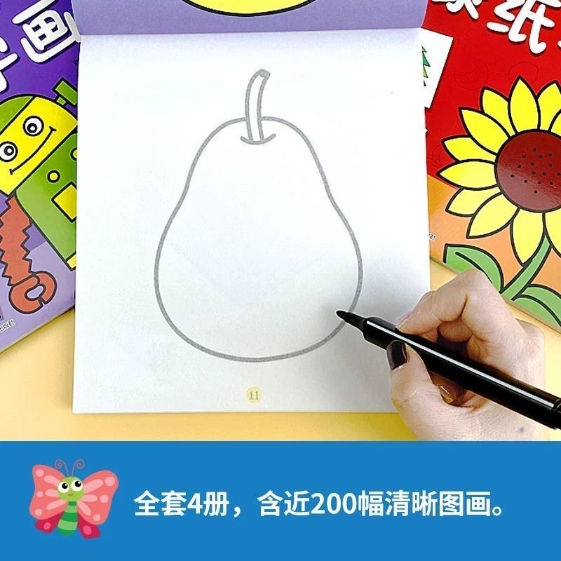 6岁宝宝简笔画手绘涂色本幼儿美术绘画练习入门 幼儿园涂色本零基础学画启蒙书适合2 全套4册 画画本3 6岁 趣味蒙纸学画
