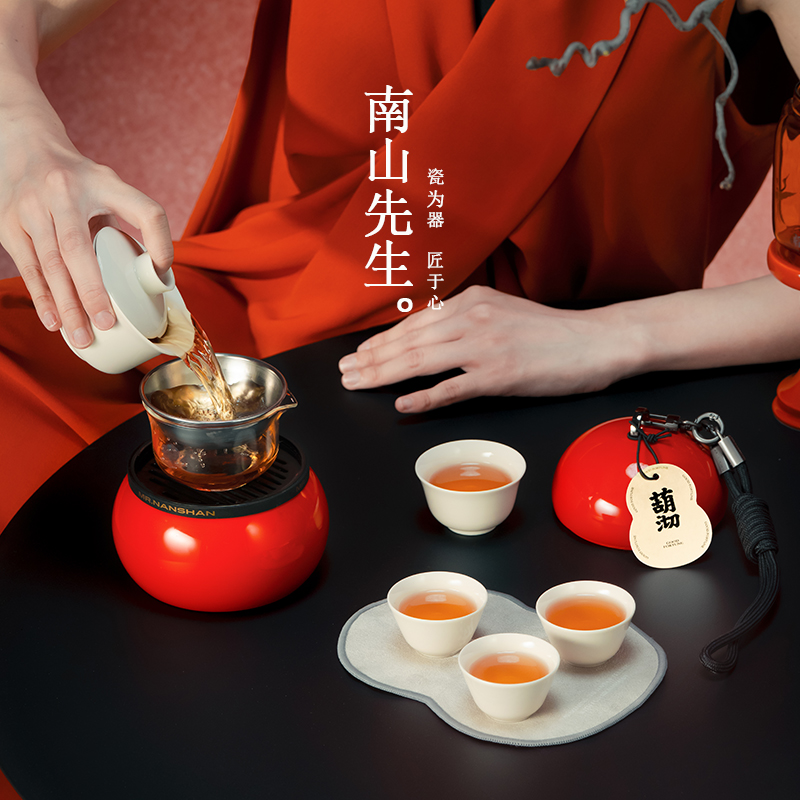 南山先生葫沏快客杯旅行茶具一壶三杯中式 户外泡茶壶小套 便携式