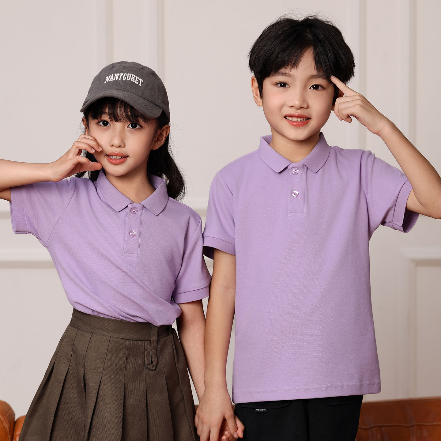 t恤粉紫色学生班服校服广告文化衫 夏季 棉质短袖 polo衫 定制 亲子装